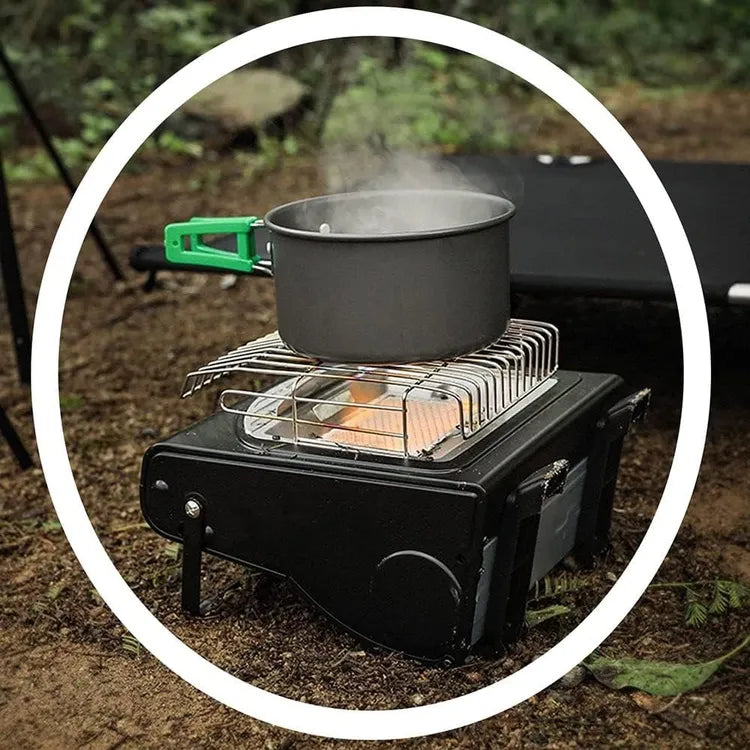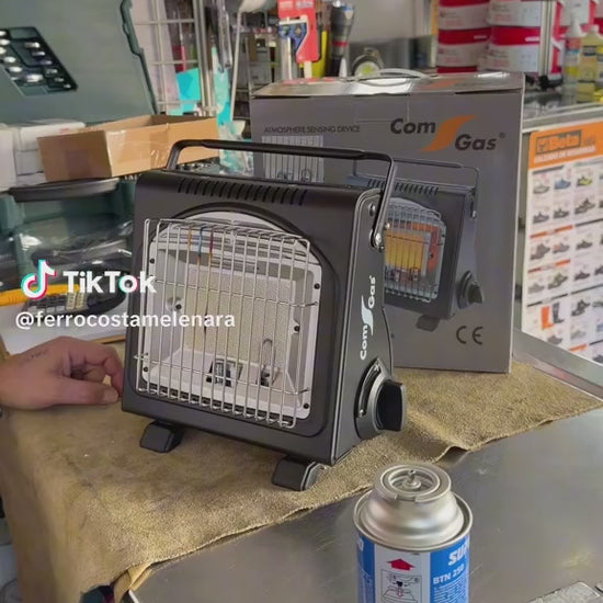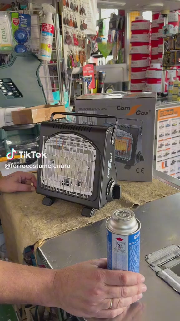 ESTUFA DE GAS PORTÁTIL DE INFRARROJOS CON ANALIZADOR DE ATMÓSFERA (ODS), 1,72 kW, CONSUMO: 124 g/h. ENCENDIDO ELECTRÓNICO. FUNCIONA CON CARTUCHOS, REFERENCIAS: 73900, 90900, 90903. DOBLE USO ESTUFA O COCINA. IDEAL PARA CÀMPING. ESTÁ DISEÑADO PARA CERRAR EL SUMINISTRO DE GAS A LA ESTUFA SI EL CONTENIDO DE OXÍGENO EN LA HABITACIÓN CAE POR DEBAJO DEL 18% DESDE UN 21% NORMAL O MÁS. ANTE LA ESCASEZ DE OXÍGENO, INTERVIENE APAGANDO EL PILOTO DEL TERMOPAR, QUE A SU VEZ CIERRA EL PASO DEL GAS A LOS QUEMADORES, CON LO QUE SE APAGA LA ESTUFA, CESANDO EL PELIGRO DE COMBUSTIÓN INCOMPLETA. USO EXTERIOR. MEDIDAS: 275 x 275 x 180 cm